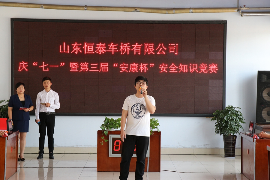 为迎接建党99周年,培养员工爱党、爱国情操,提升员工安全生产意识,恒泰车桥有限公司组织开展“‘庆七一’主题活动暨‘安康杯’知识竞赛”。活动通过知识竞赛穿插文艺表演的形式开展。安全知识竞赛如火如荼,不相上下;员工通过爱国诗朗诵、歌曲联唱等方式抒发了爱国情怀,进一步凝聚了企业干事创业的精神合力。