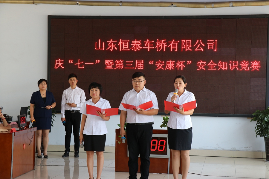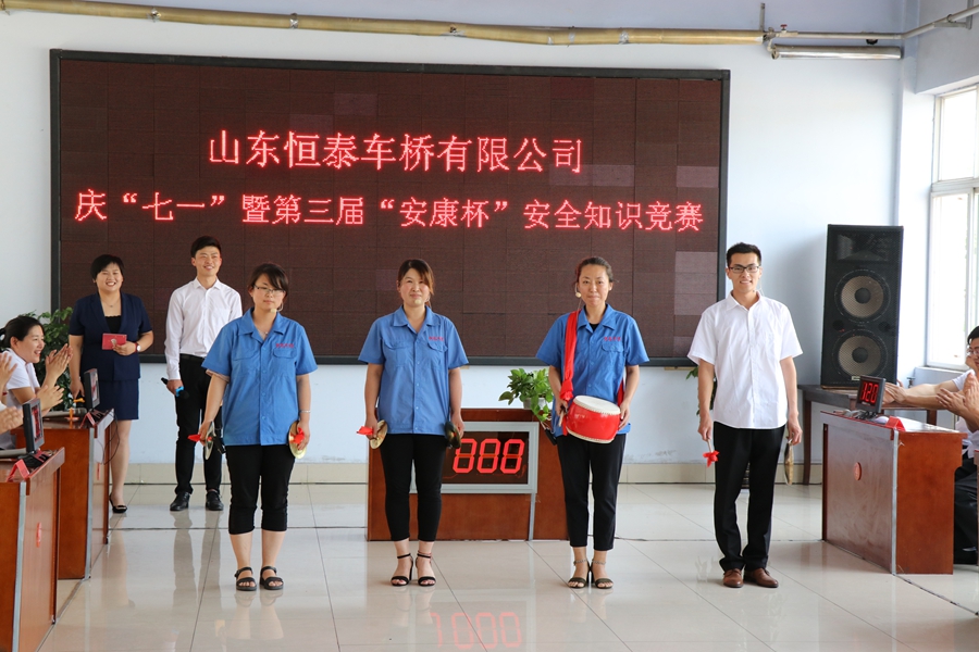 为迎接建党99周年,培养员工爱党、爱国情操,提升员工安全生产意识,恒泰车桥有限公司组织开展“‘庆七一’主题活动暨‘安康杯’知识竞赛”。活动通过知识竞赛穿插文艺表演的形式开展。安全知识竞赛如火如荼,不相上下;员工通过爱国诗朗诵、歌曲联唱等方式抒发了爱国情怀,进一步凝聚了企业干事创业的精神合力。